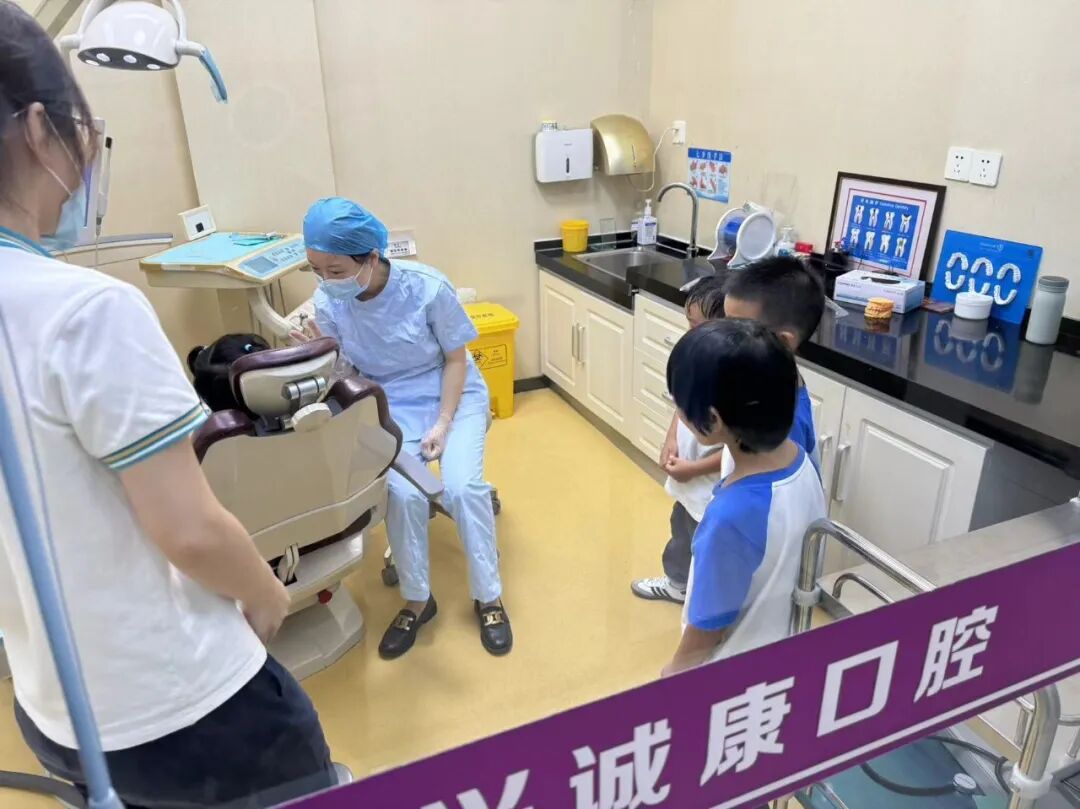 活动现场,兴诚康口腔诊所的医生为小朋友们仔细检查口腔情况,用牙齿模型向小朋友们科普了牙齿的基本结构、乳牙脱落和恒牙萌出的时间等知识,并用通俗易懂的语言展示了口腔保健方法,使小朋友们受益匪浅。
